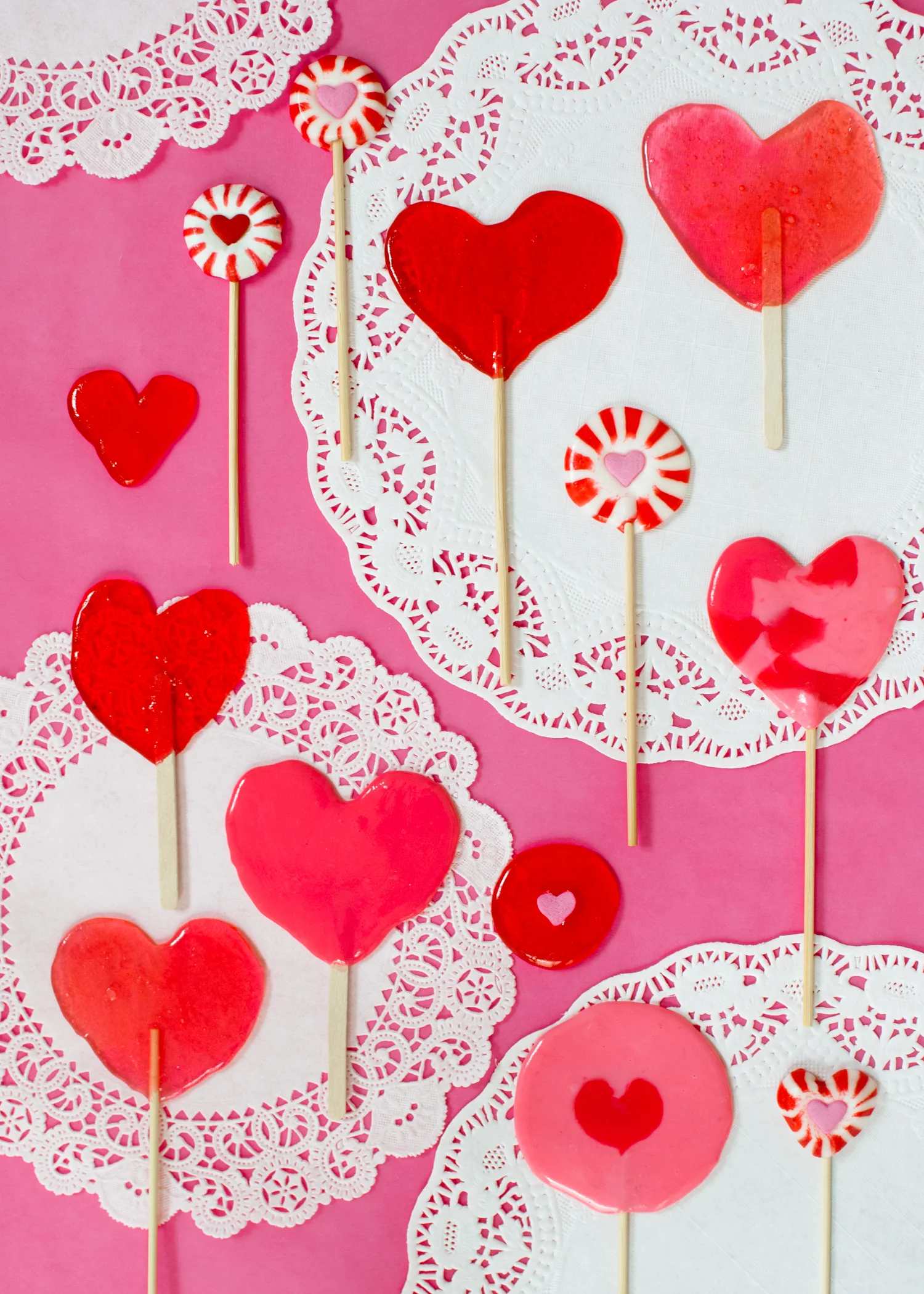 Hearts are one of my favorite symbols/shapes, year-round! No need to wait for Valentines Day! These heart pops are easy-to-make and great for weddings and bridal showers too. Besides the usual Jolly Ranchers, I used leftover peppermint swirl candies and added heart-shaped sprinkles . We shared the full how-to for these on the fantastic Etsy Blog!
