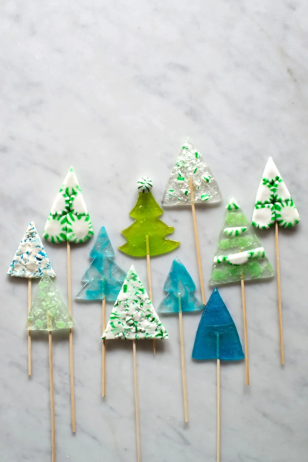 Finally, our Triangle Tree Pops, great for Christmas...or a woodland birthday party! The full how-to for these along with some other peppermint treats is here on Martha Stewart.