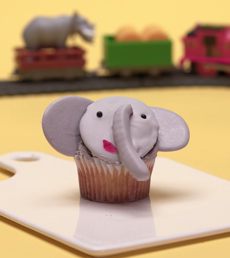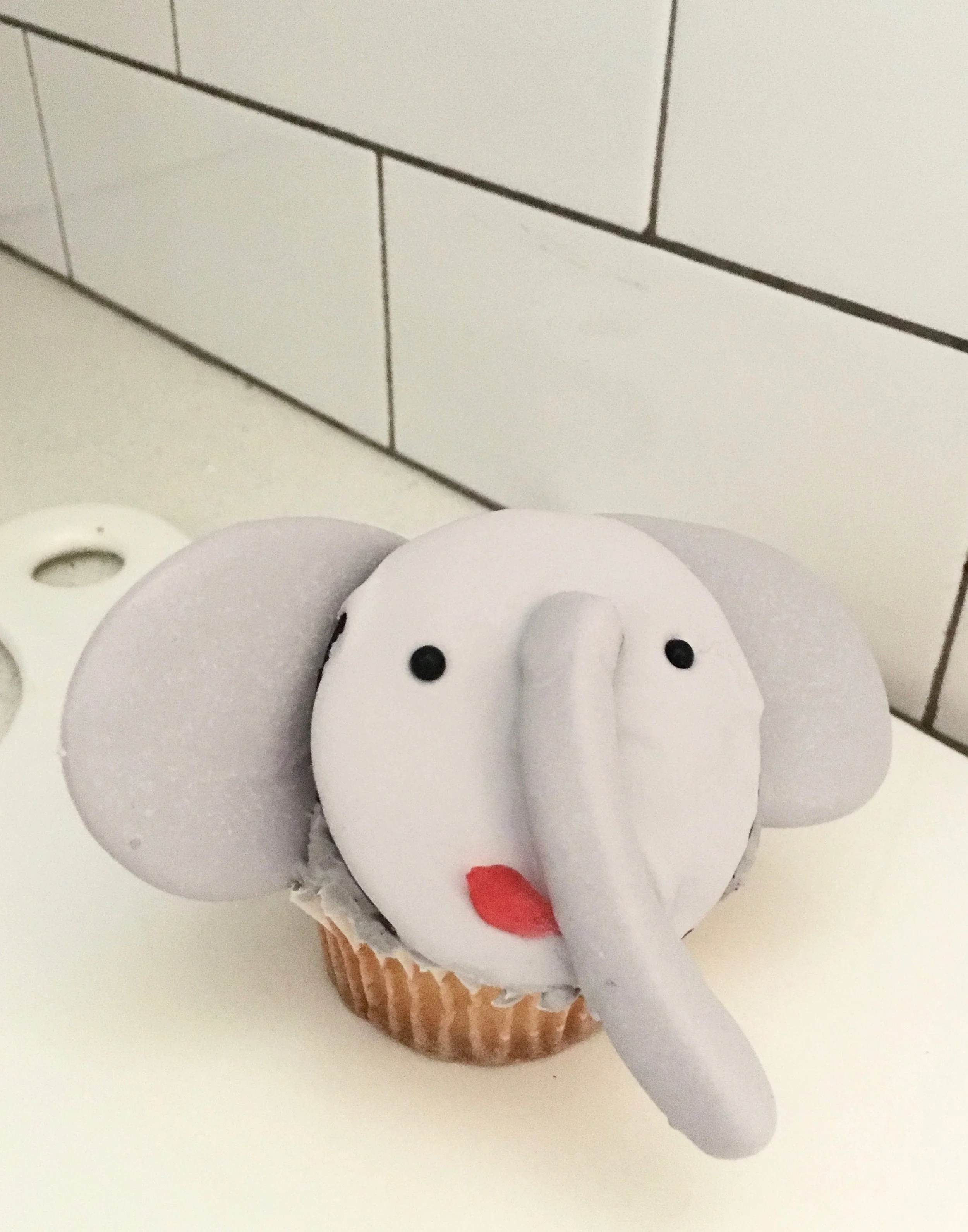 The elephant’s face is made from a Nabisco Famous Wafer cookie coated in grey candy melt (which is made from blending white and black candy melts.
