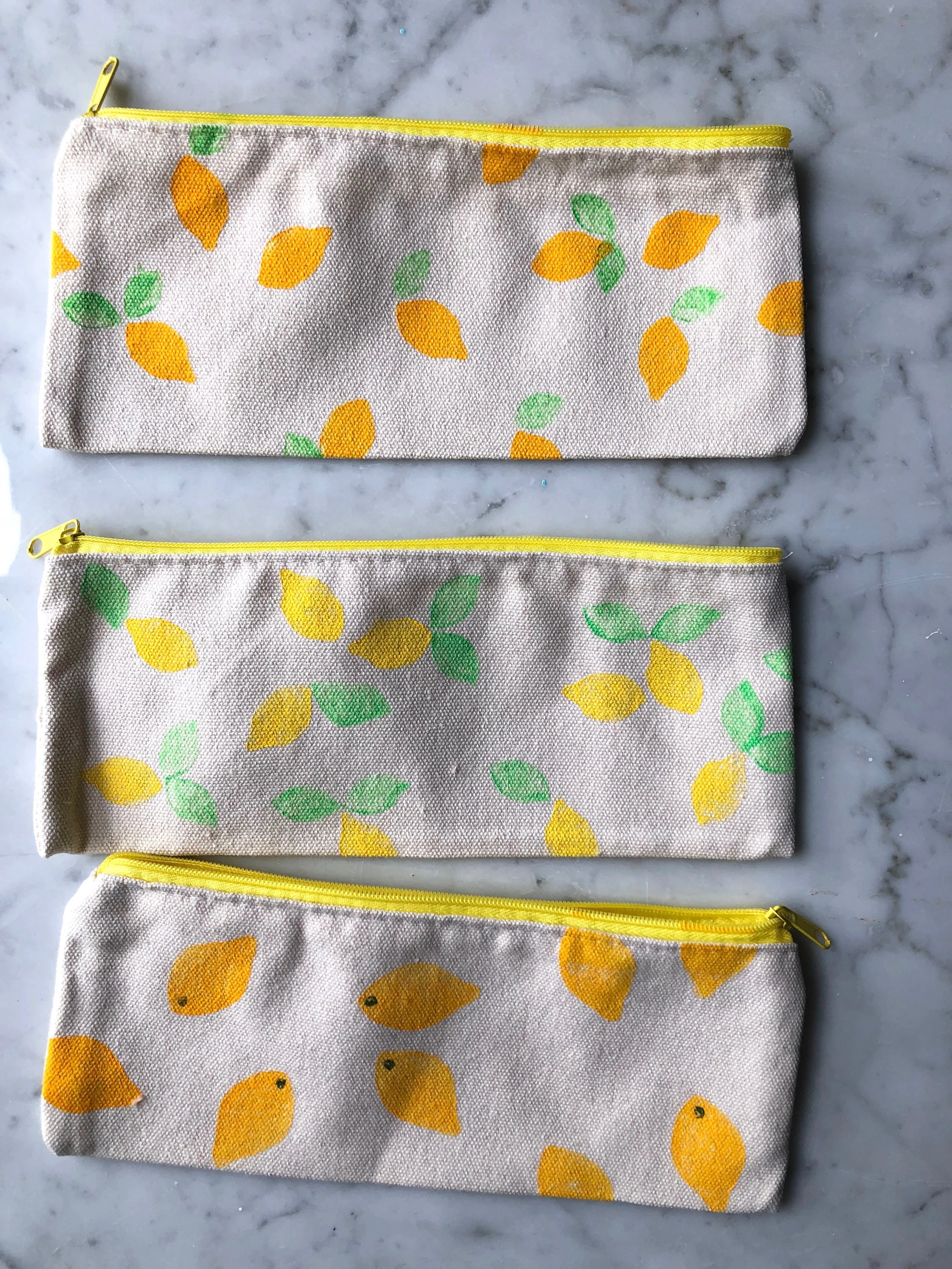 New school supplies always helped to soften my childhood back-to-school blues. I loved decorating my pristine new notebooks, binders, and folders with stickers, doodles, and tape. In that spirit, I created some back-to-school crafts for Parents magazine! In the photo above are some fruit-themed items: tape and marker-decorated folders, stamped pencil cases, and washi tape-covered pencils. Super easy! Here are some of the fun items I used:
